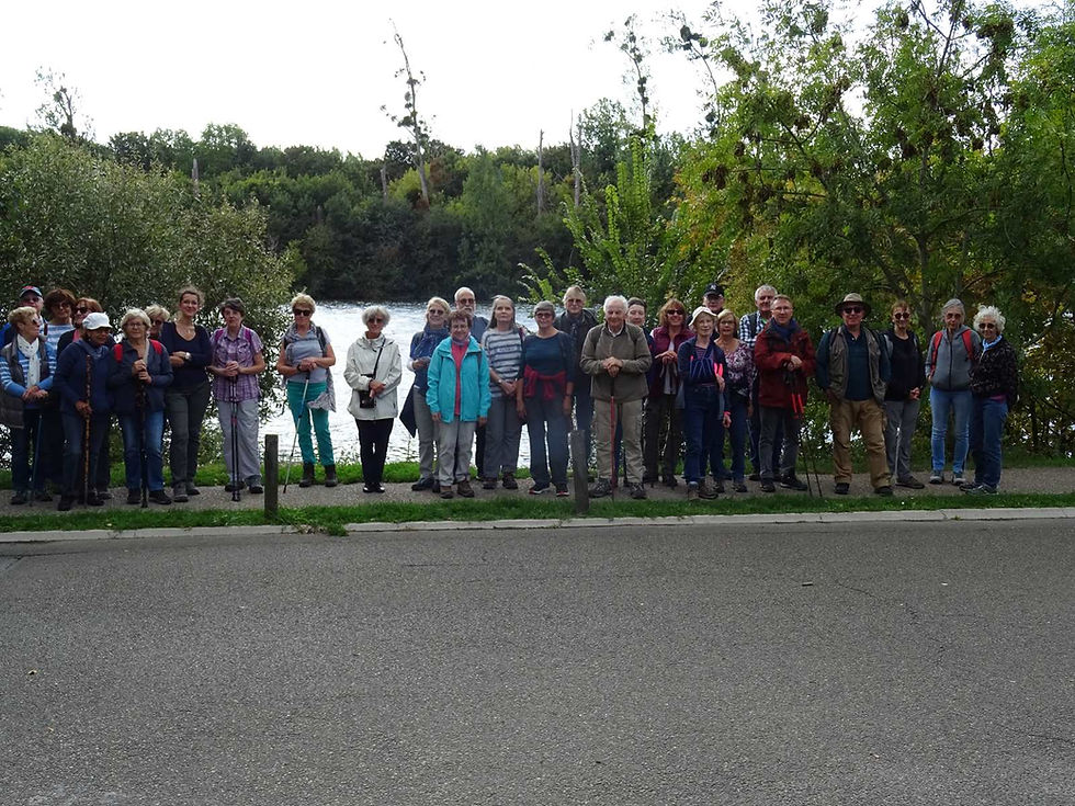 38 marcheurs en compagnie de notre nouvelle macotte: Teddy au départ d'une belle randonnée sans soleil, un peu fraiche, mais sans pluie. 10 km pour un groupe et 8 pour l'autre ont été parcourus